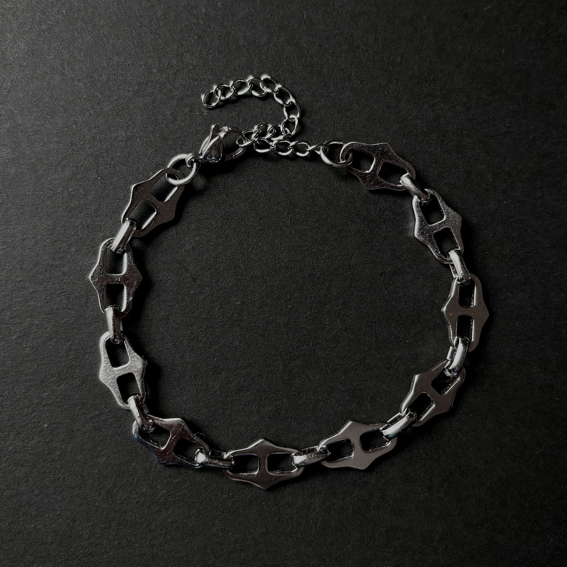 Stainless steel interlocking bracelet. Designed to withstand everyday wear.